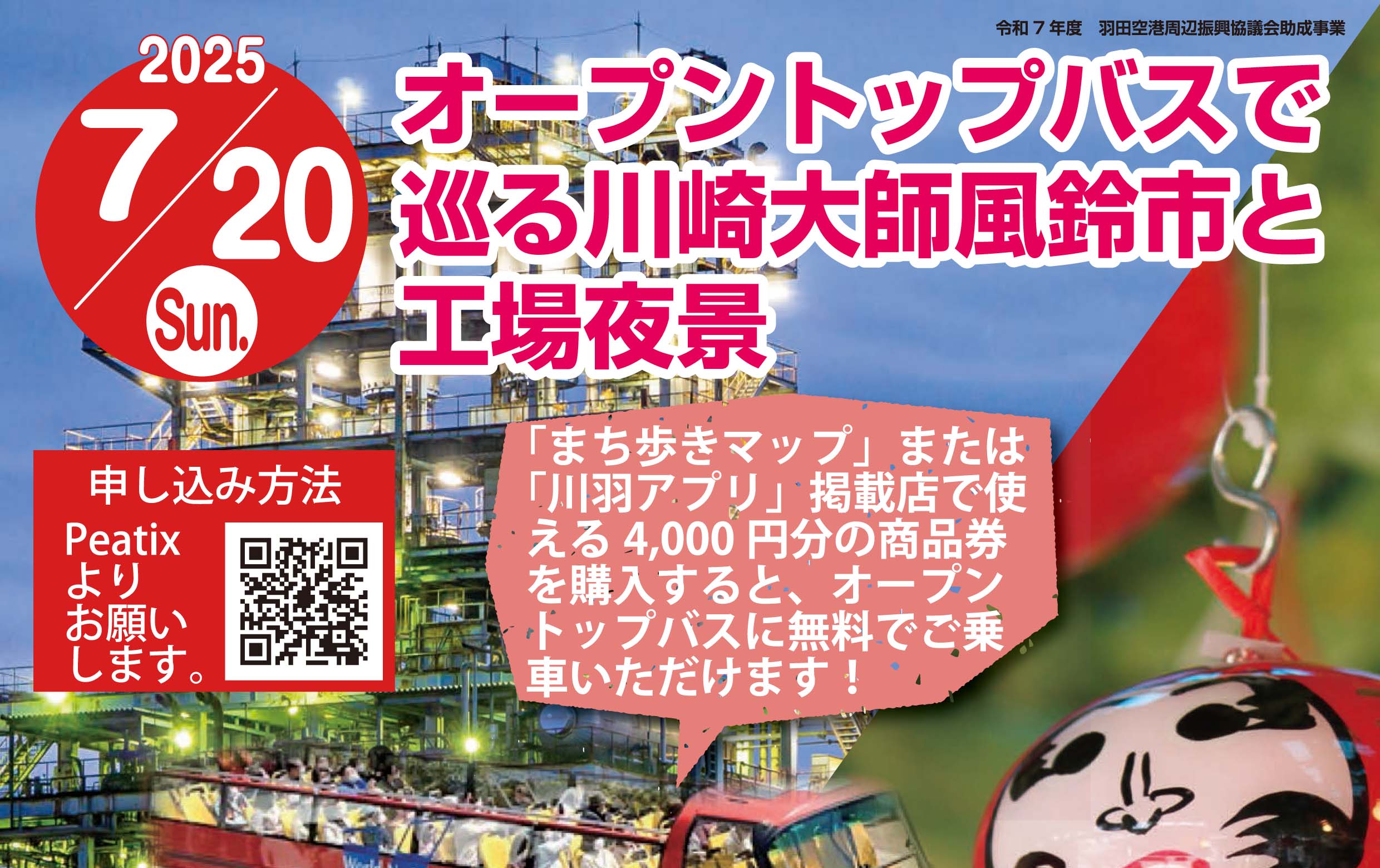 2025年7月20日(日)オープンバスで巡る川崎大師風鈴市と工場夜景